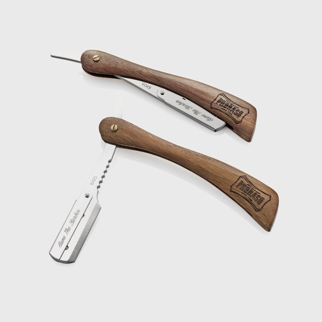 Táto štýlová shavetta je vhodná pre začiatočníkov aj profesionálov v holičstve. Rukoväť zdobená logom Proraso je vyrobená z orechového dreva. Vďaka drážkam na ramene sa šavľa ľahko drží. Od talianskej značky pánskej kozmetiky Proraso.