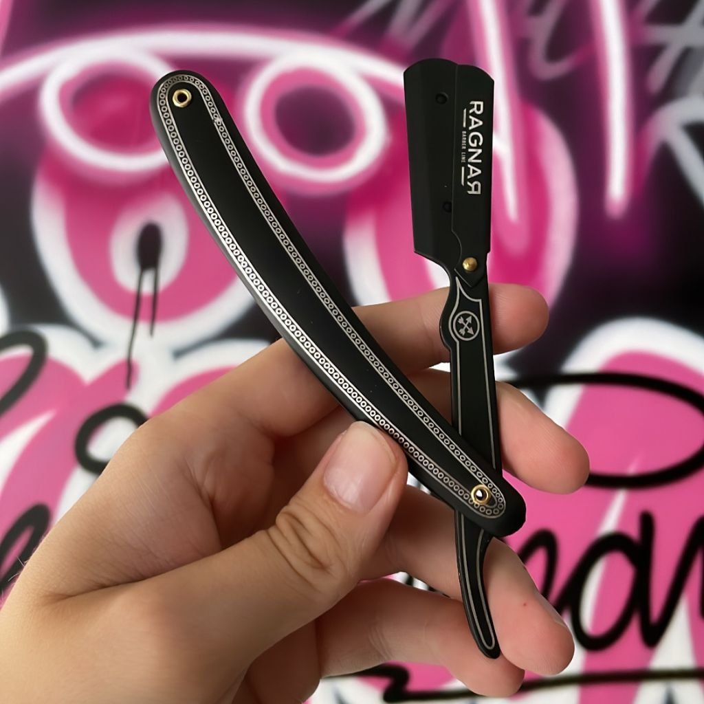 Kvalitná a štýlová shavetta v čiernej farbe od španielskej barber značky RAGNAR. Shavetta je vyrobená z vysoko kvalitnej ocele (420C). Laserom vypálené logo RAGNAR.