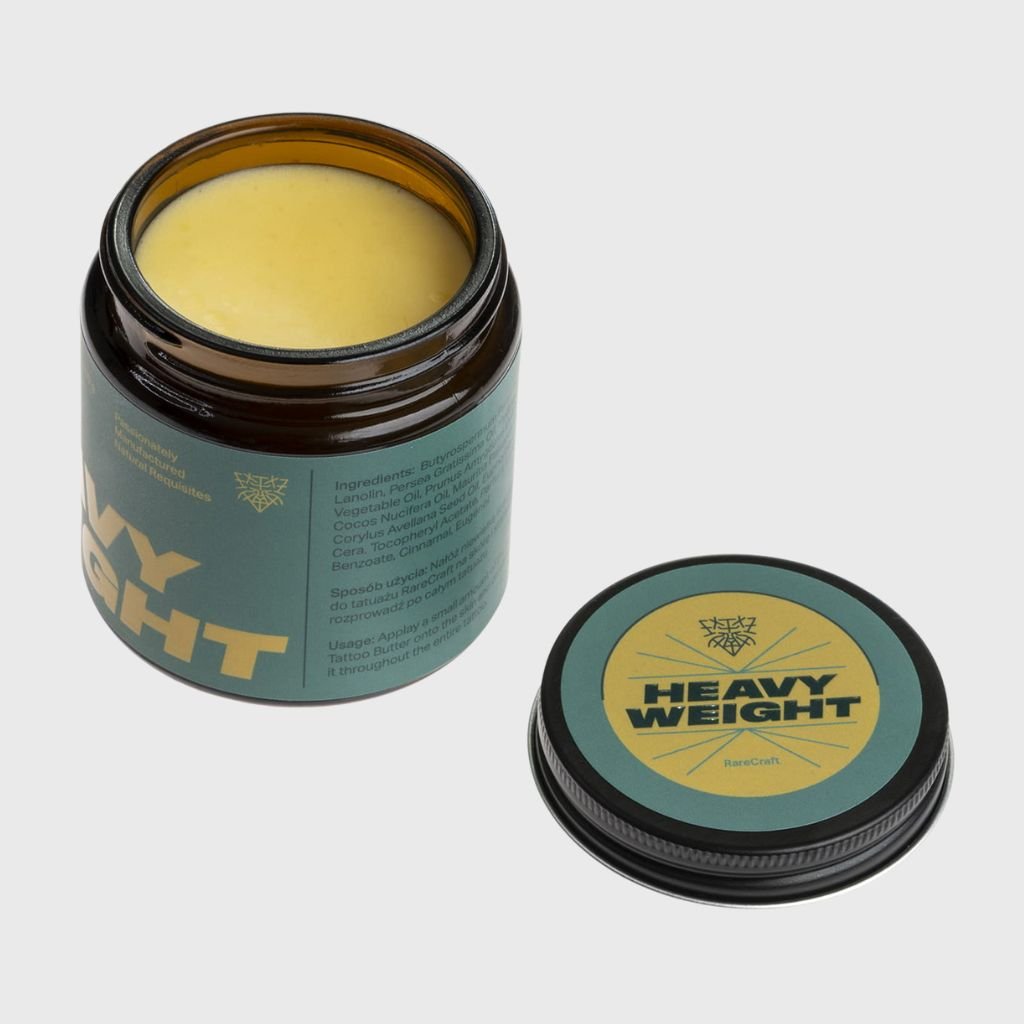 Heavyweight maslo pre starostlivosť o tetovanie od RareCraft je jedinečný produkt pre skutočných majstrov. Maslo Heavyweight Butter, inšpirované atmosférou boxerského ringu a hrdosťou na nosenie majstrovského opasku, ponúka nielen vynikajúcu starostlivosť, ale aj nezabudnuteľnú vôňu.