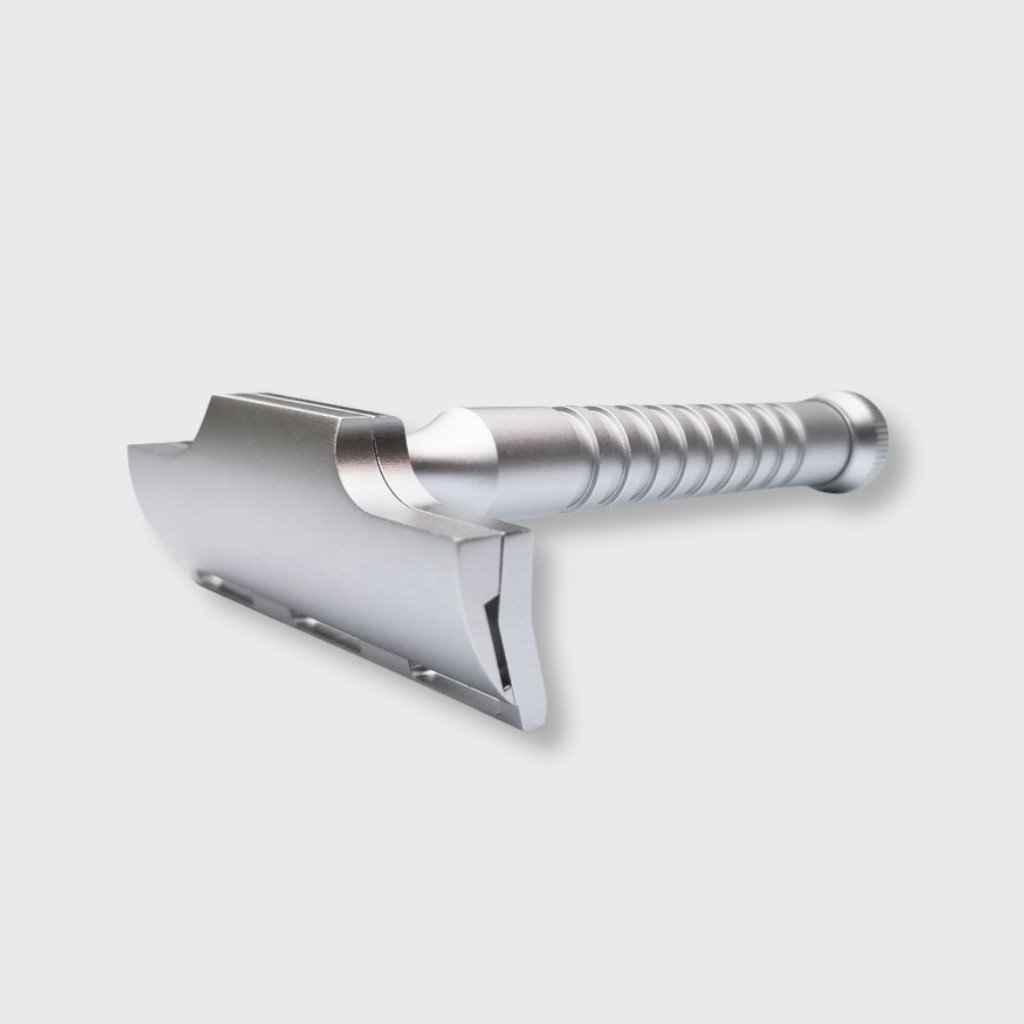 Holiaci strojček RazoRock HAWK vo farbe Satin Silver na klasickej, single edge žiletky.