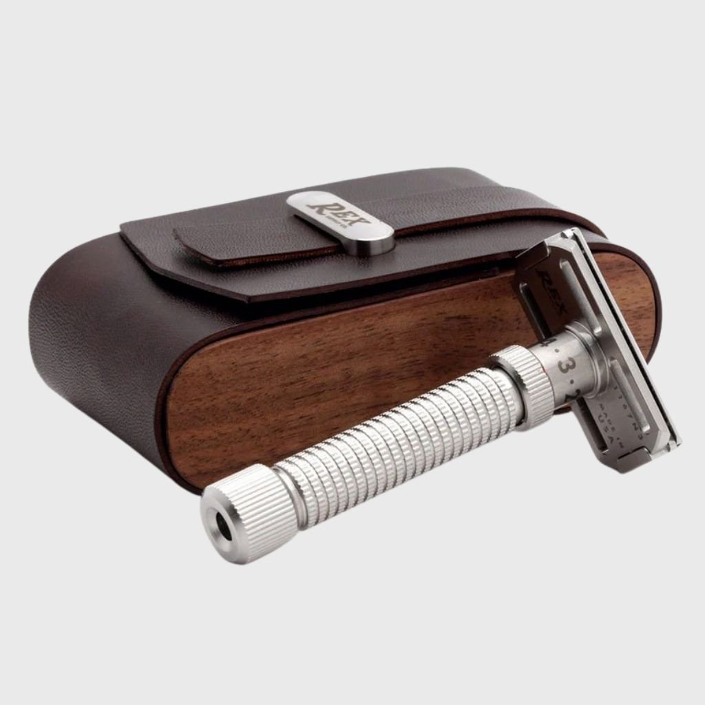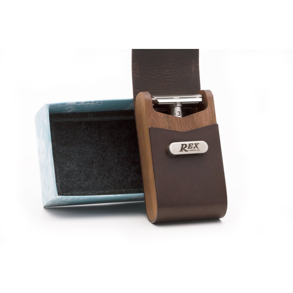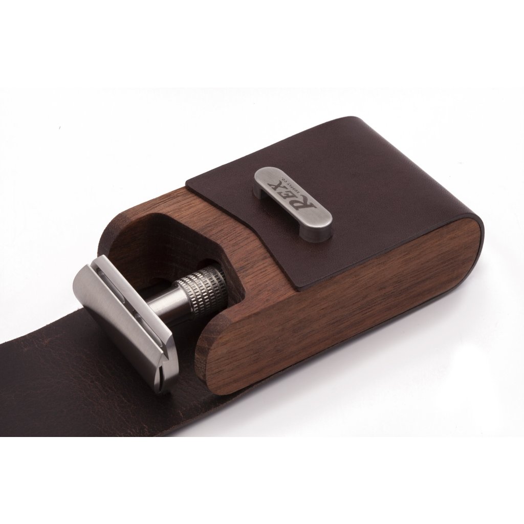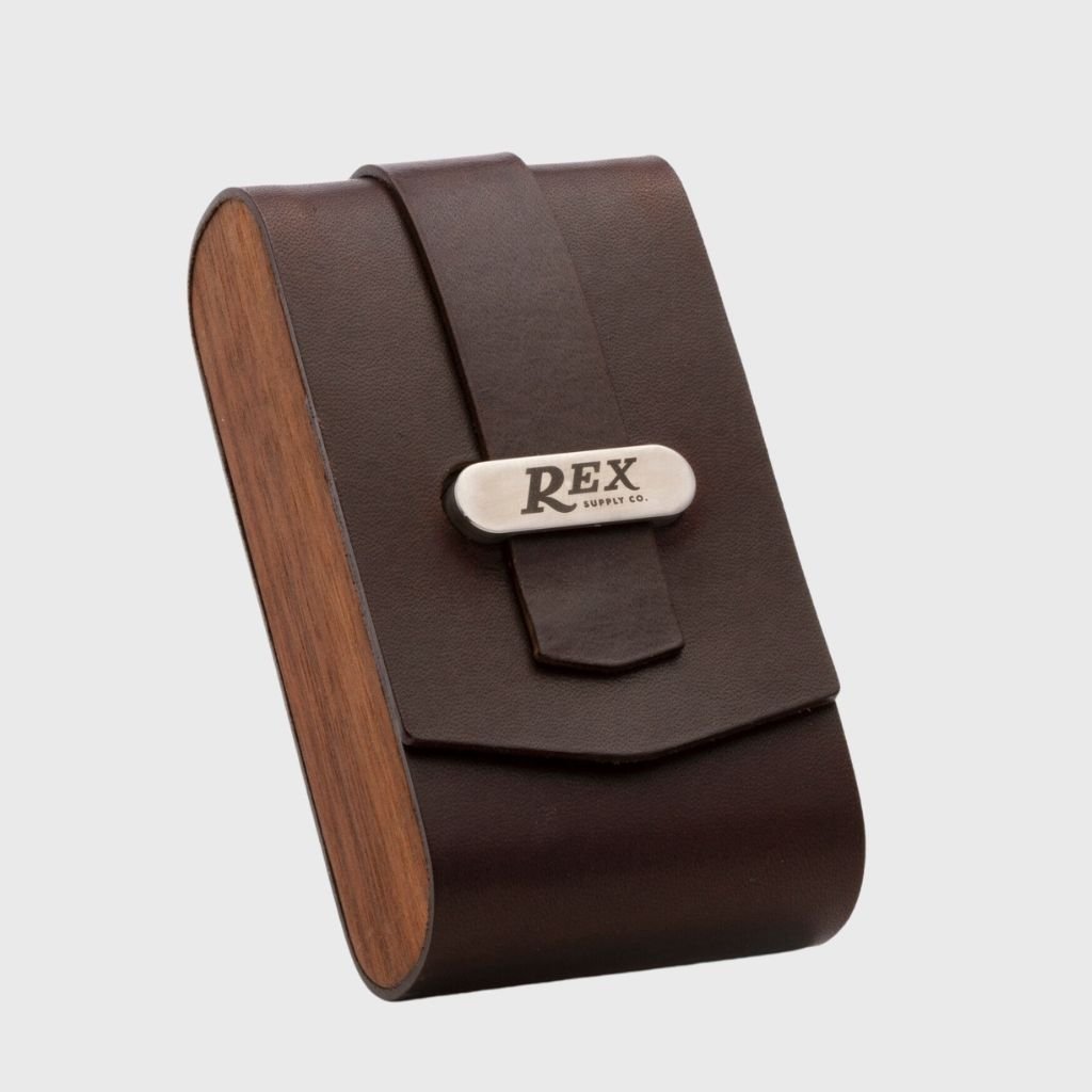 Ak raz zažijete dokonalé oholenie, už nikdy sa bez neho nezaobídete, ani keď ste na cestách. Toto puzdro od spoločnosti Rex Supply Co. poskytuje holiacim strojčekom maximálnu ochranu. Je vyrobená z dreva amerického čierneho orecha a pravej kože Horween a má značkové akcenty z nehrdzavejúcej ocele.