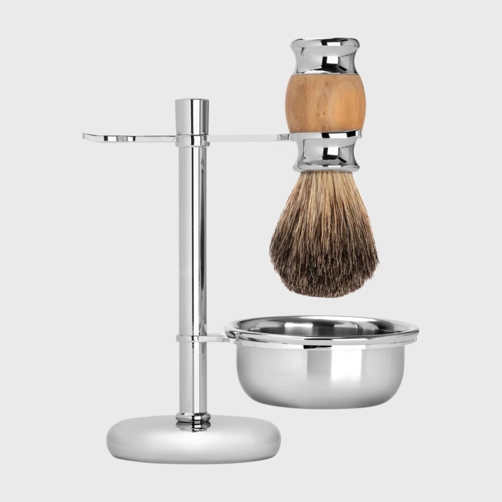 Sada na holenie - stojan, miska, štetka na holenie - chróm
