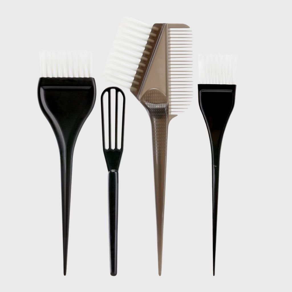 Profesionálna sada nástrojov na farbenie vlasov. Sada obsahuje 1 miešadlo, 1 hrebeň na farby, 2 štetce na farby. Balíček základných a praktických nástrojov na farbenie vlasov. Vhodný na profesionálne použitie v salóne aj v domácnosti. Ľahko sa čistí vodou, dá sa umývať a opakovane používať.