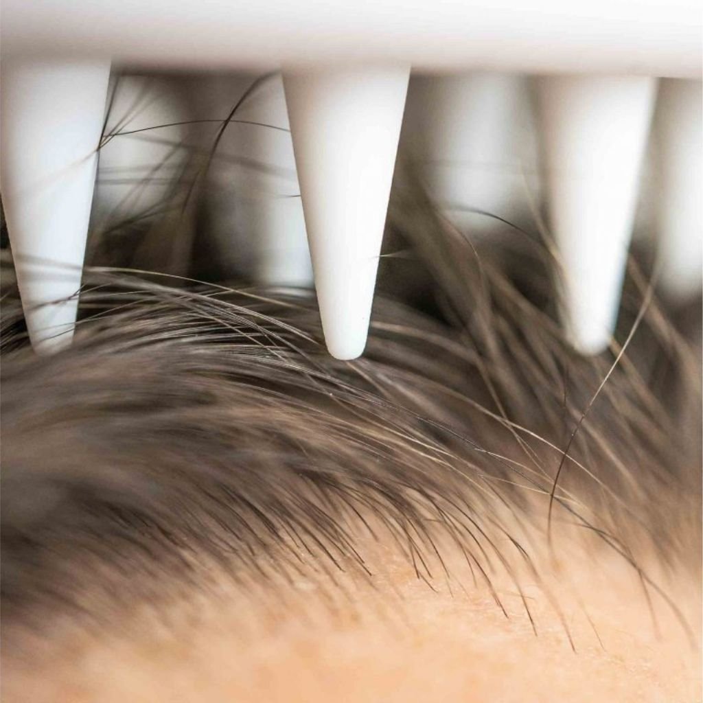 Masážna kefa je navrhnutá tak, aby sa ľahko držala a používala, čo umožňuje pohodlnú a účinnú aplikáciu. Krúživými pohybmi masírujte pokožku hlavy minimálne 4 minúty, aby ste dosiahli optimálnu stimuláciu a revitalizáciu.