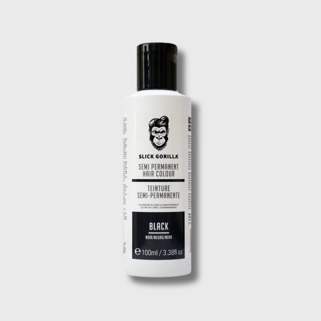 Slick Gorilla Semi Permanent Hair Colour Black. Táto jedinečná čierna farba na vlasy určená špeciálne pre mužov posúva hranice možností farbenia vlasov. Farba bola vyvinutá s ohľadom na potreby mužských vlasov od krátkych po stredne dlhé a používa vysokokvalitné pigmenty, ktoré zaručujú autentický a verný odtieň.