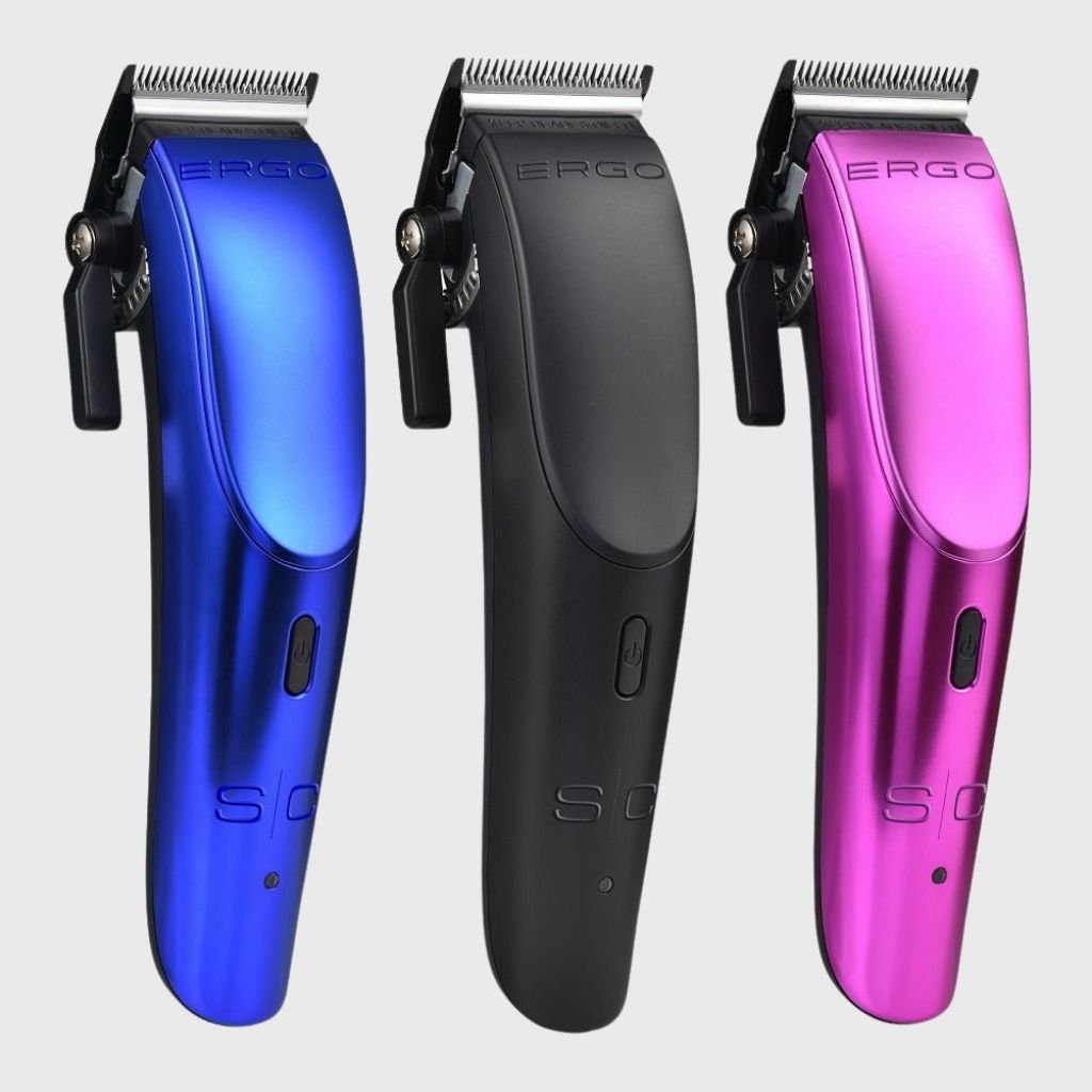 Prvý plne modulárny zastrihávač Ergo obsahuje kompletnú sadu Metallic Blue na vytváranie rôznych povrchových úprav. Priehľadná opierka na palec je namontovaná na Ergo a umožňuje vám vidieť najrýchlejší a najtichší motor v akcii. Ergo je navrhnuté tak, aby bolo v ruke dokonale vyvážené.