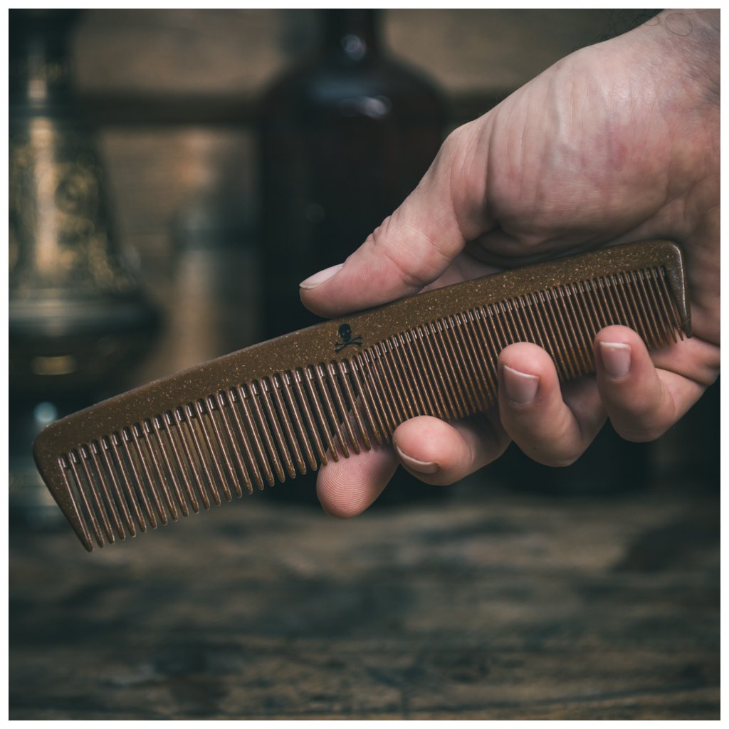 Hrebeň od anglickej značky The Bluebeards Revenge je vyrobený z revolučného biologicky odbúrateľného materiálu známeho ako tekuté drevo. Táto ekologická alternatíva plastu sa lisuje z buničiny a celulózových vlákien, ktoré zostávajú z procesu výroby papiera.