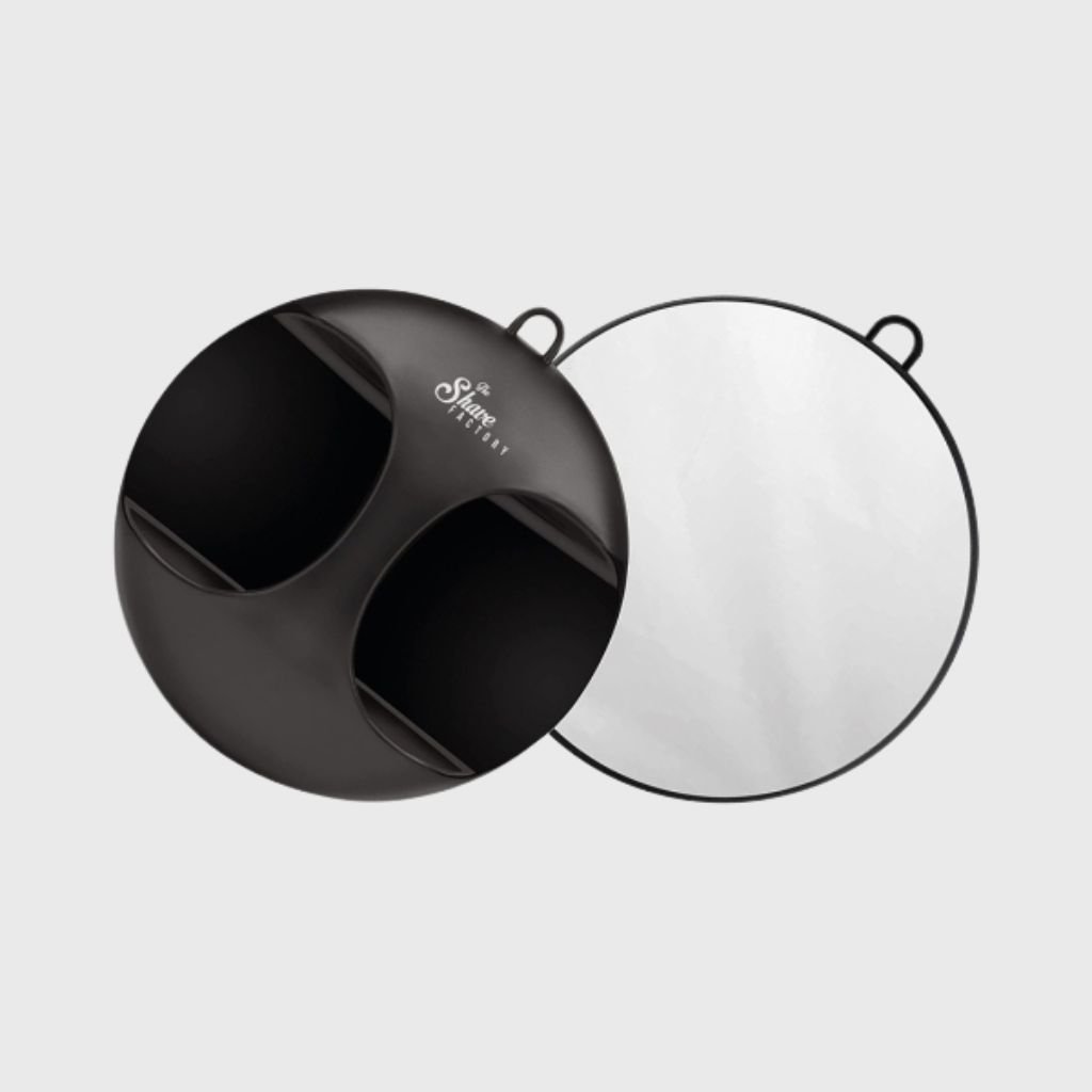 Čierne kadernícke zrkadlo The Shave Factory Barber Mirror je okrúhle kontrolné zrkadlo v ideálnom rozmere pre každý barber shop, kaderníctvo, holičstvo či kozmetický salón. Slúži na kontrolu nového strihu alebo vzhľadu zákazníka zo všetkých strán.
