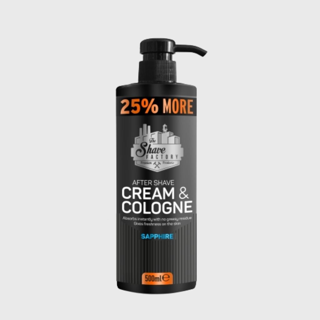 The Shave Factory Sapphire krémová kolínska (balzam po holení). Veľké 500 ml balenie vhodné napríklad na použitie v kaderníctve.