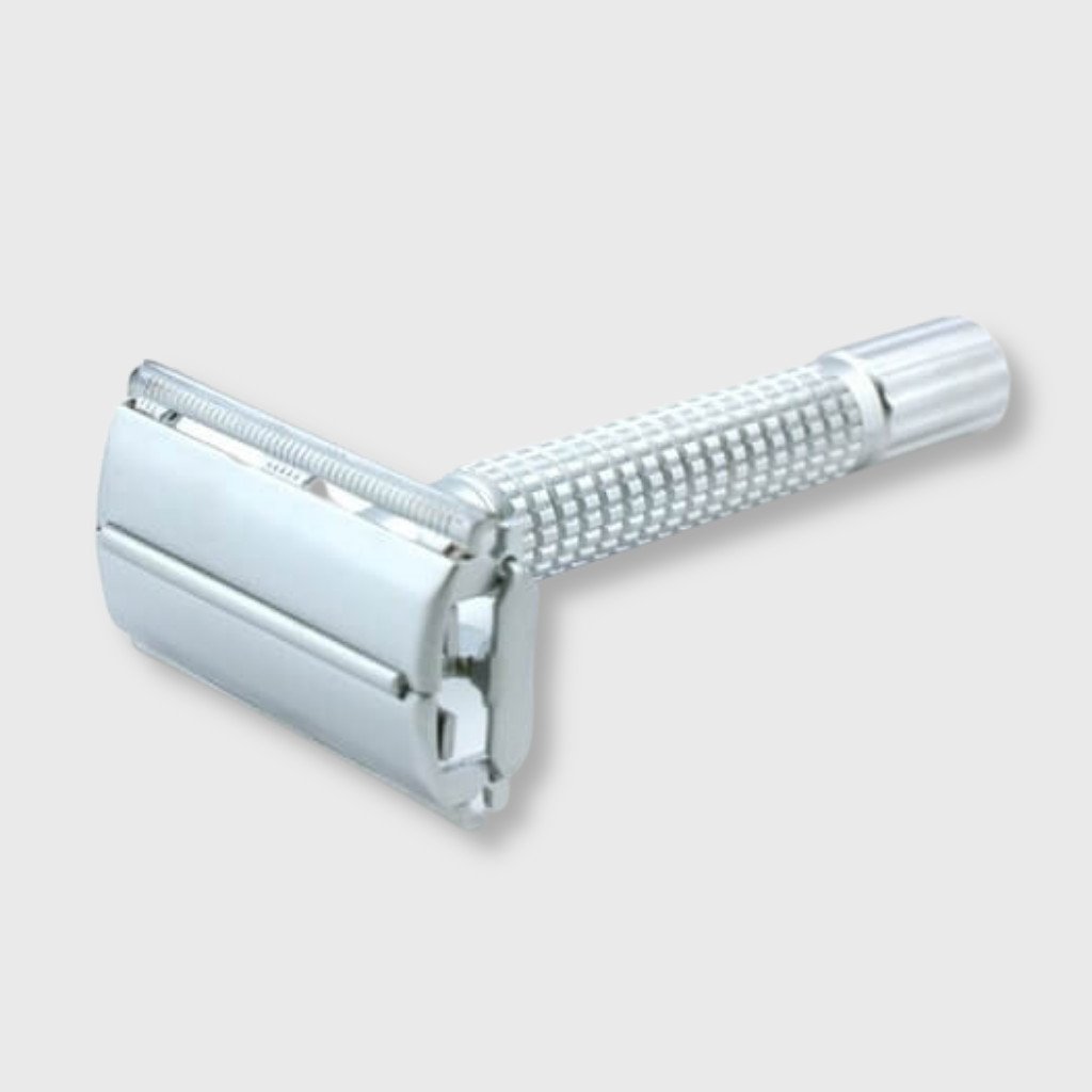Kvalitný holiaci strojček Timor v matnej povrchovej úprave s hlavicou typu butterfly - hlavica so skrutkovaním roztvára a tým umožňuje bezpečnú a rýchlu výmenu žiletiek.