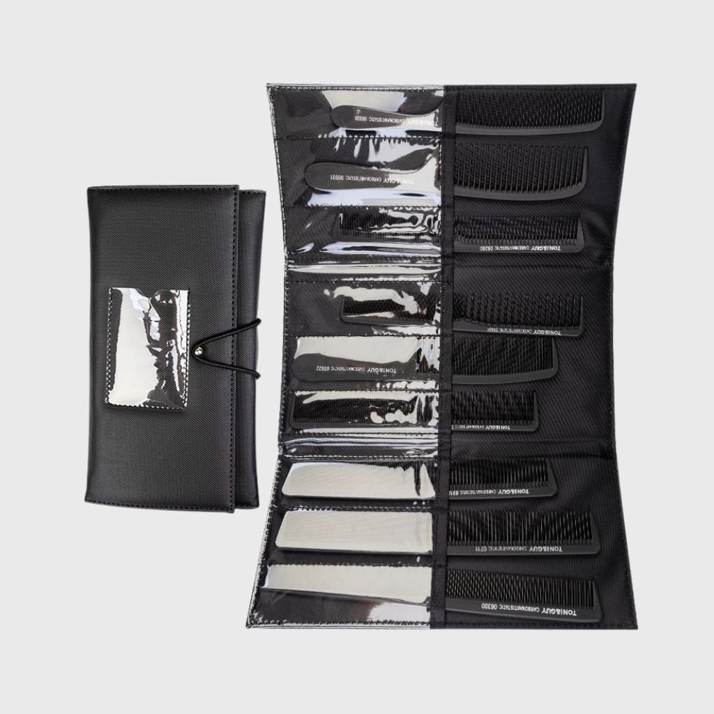 Sada profesionálnych hrebeňov TONI&GUY CARBON pozostávajúca z 9 jedinečných hrebeňov na česanie a úpravu vlasov. Všetky boli vytvorené s dôrazom na najmenší detail a s použitím vysokokvalitných materiálov. Majú nezvyčajné tvary a nadčasové farby. Sú ideálne na rozčesávanie aj veľmi hustých vlasov.
