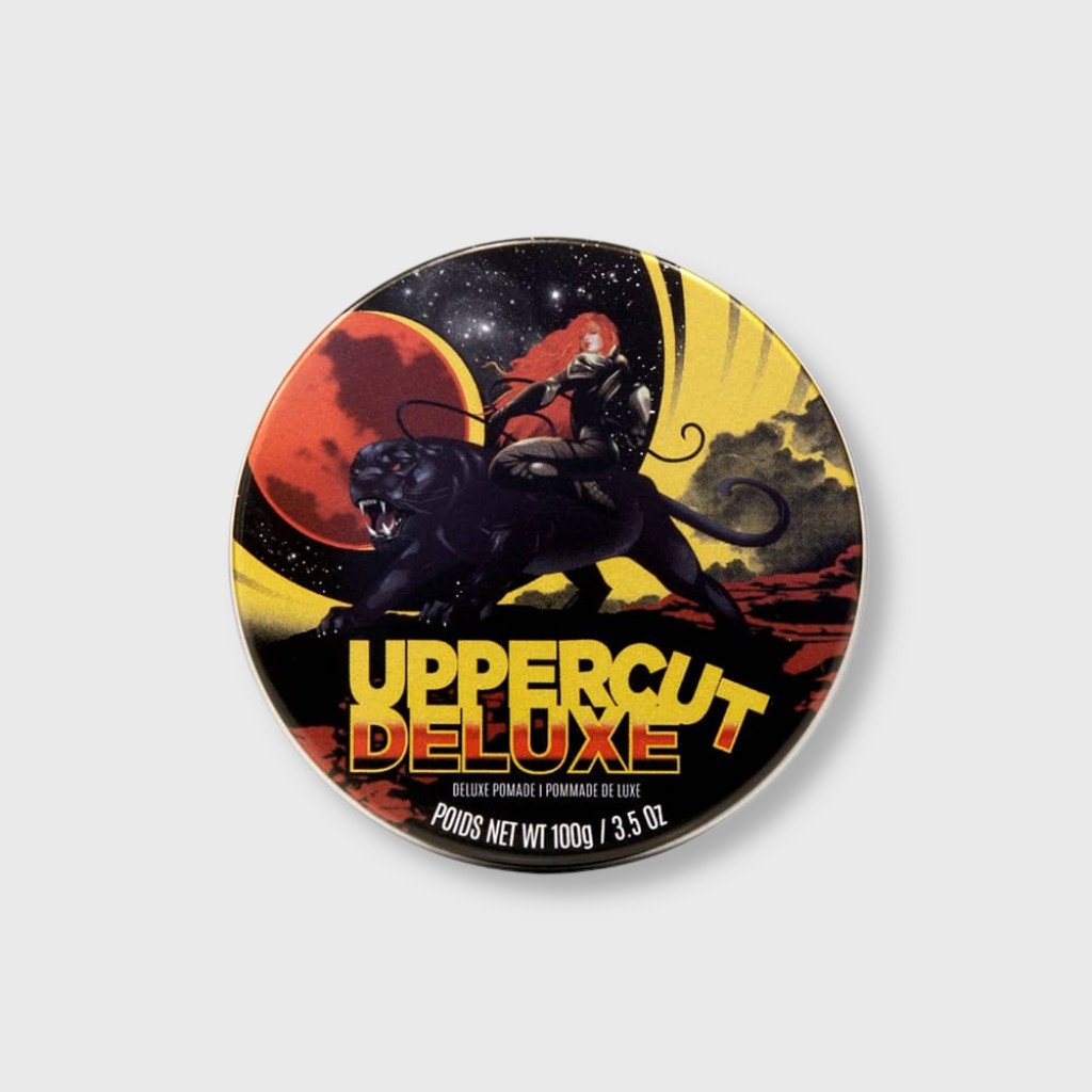 Limitovaná edícia pomády na vlasy od austrálskej značky Uppercut v zlatej verzii s metalickými vločkami a kovovej plechovke s motívom fantasy umenia v štýle 70. rokov. Táto pomáda so silným spevňujúcim účinkom je určená pre náročných mužov. Je na báze vody, vhodný pre všetky typy vlasov a dodáva vlasom stredne vysoký lesk. Vyrobené v Austrálii.