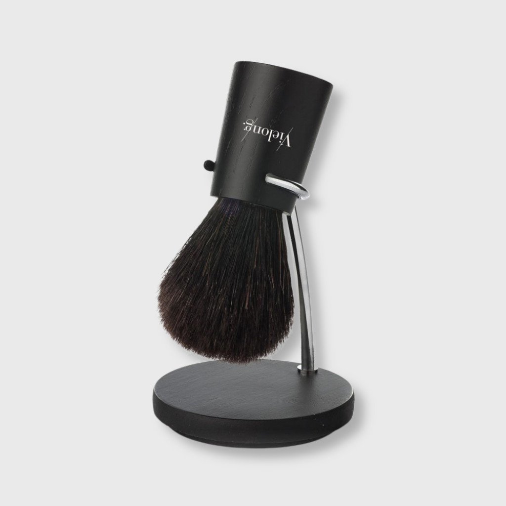 Elegantná súprava Nordik Black Horse obsahuje kovový stojan s čiernym dreveným podstavcom a štetku na holenie s rukoväťou z čierneho dubového dreva. Vlasy sú vyrobené z konských vlasov, ktoré dobre absorbujú vodu a vďaka svojej jemnosti, dĺžke, priemeru a hustote poskytujú jedinečný zážitok z holenia.